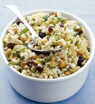 - Combine rice, onion-chickpea mixture, dates, mint, and parsley in a large bowl. Toss well until thoroughly combined. Serve warm or at room temperature.