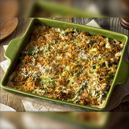 - In a small bowl prepare corn flake topping by, mixing together corn flakes and margarine. Spread corn flake mixture on top of green beans. Bake 15-20 minutes.