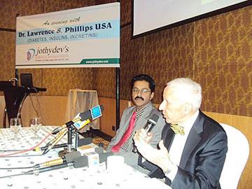 Lawrence Phillips, MD from Emory University, Atlanta, Georgia, USA interacted with the media. Dr.Jothydev presented some of the key data from Diabscreen Kerala, (Kesavadev Trust) population studies. There was an active interaction with the media on topics related to diabetes management, cost of new medicines due to escalating cost of research, early insulin etc.,