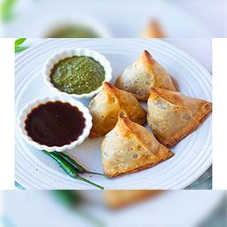Serve samosas with cilantro-yogurt sauce. Garnish with additional cilantro.