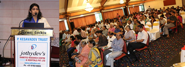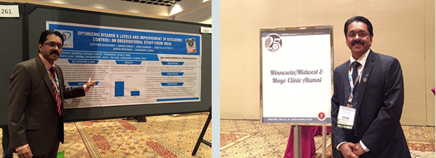 JDC had original research papers presented at the 25th Annual Meeting of American Association of Clinical Endocrinologists (AACE) at Orlando, Florida from May 25-29, 2016. In a study presented from Jothydev's Diabetes Research Centers, it was found that optimising Vitamin D levels in blood has profound effect on improving diabetes control. 2134 subjects were screened for Vitamin D deficiency. Deficiency was severe in 60% and moderately in 27%. With the emerging evidence of low Vitamin D levels being linked to major disorders, including cancers and fractures, this research from India, documenting normal Vitamin D levels in only 12% of patients and its association with diabetes control, gained huge attention.