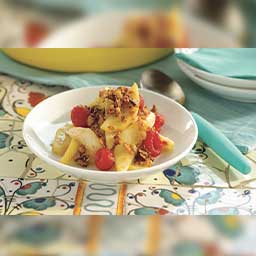 Remove skillet from heat. Gently fold in raspberries, sugar substitute, vanilla, and almond extract. Sprinkle granola crumbs evenly over top. Let stand, uncovered, 30 minutes.