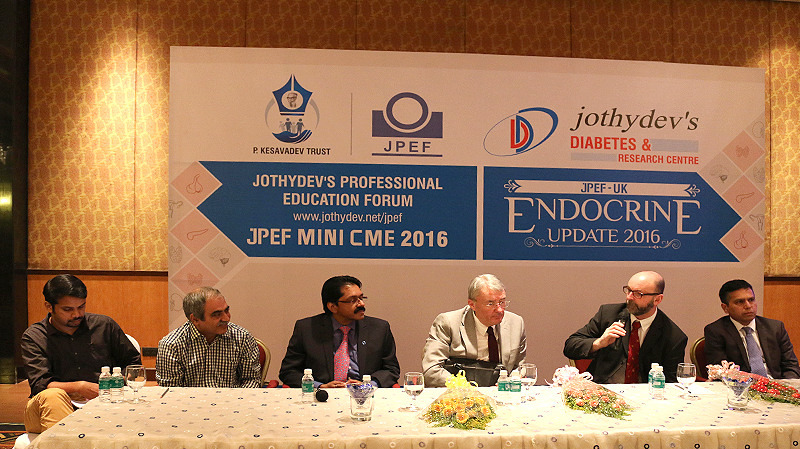 JPEF and P.Kesavadev Trust organised the JPEF-UK Endocrine Update on 7th March at Vivanta by Taj. Lecture on ‘Management of erectile dysfunction and hypogonadism in diabetes’ was by Dr Steve Davies, Senior Consultant in Endocrinology, University Hospital of Wales, ‘Therapeutic advances in management of lipid disorders’ was by Dr Alan Rees, Chairman, The Society of Physicians in Wales. ‘Advances in insulin therapy: a leap forward from premix to modern co-formulations’ was by Dr.Jothydev Kesavadev. Dr.Atul Kalhan, Consultant in Diabetes and Endocrinology, Royal Glamorgan Hospital, Wales lectured on ‘Dapagliflozin as monotherapy and add on in type 2 diabetes: global guidelines and emerging evidence’.