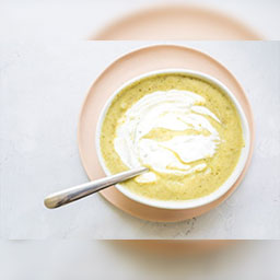3. Combine chives, yogurt, lemon juice, salt, and pepper. Drizzle on top of warm soup and serve.