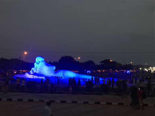 Blue Monument Lighting: The Giant Mermaid at Shankumugham Beach, Kovalam, Trivandrum, Kerala