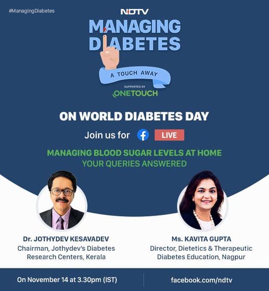 Ten tips by Dr.Jothydev Kesavadev to help keep diabetes at bay was published in Manorama online magazine on 14 November 2021. As we celebrate another Diabetes Day, it will be useful for the readers to be aware of diabetes and its prevention, opined Dr.Jothydev.