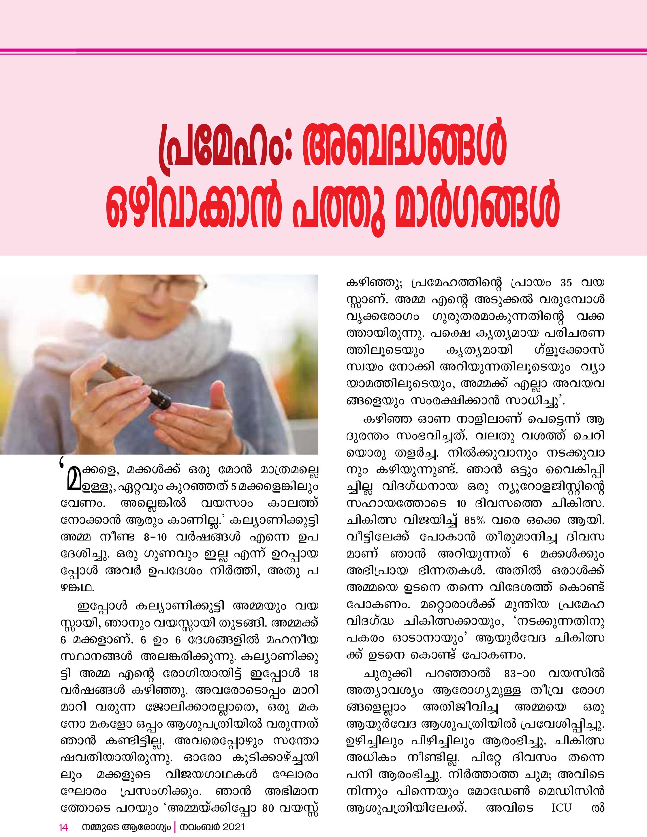 An educational article on ‘Ten ways to avoid mistakes in diabetes’ by Dr.Jothydev Kesavadev was published in Nammude Arogyam magazine, November issue.
