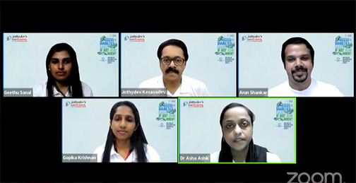Jothydev’s Diabetes Research Centre and Kesavadev Trust and organized a two-day insulin training workshop - iSchool Series 6, virtually on 18-19 November 2021. Dr.Jothydev Kesavadev, Dr.Arun Shankar, Dr.Asha Ashik, Ms.Gopika Krishnan, Ms.Geethu Sanal, Dr.Ashwin David Ashok, Ms.Akhila Manoj and Dr.Yaseen Unes discussed diverse topics related to insulin, including, an overview of diabetes management and insulin therapy, insulin regimens, types, benefits and challenges, insulin initiation, titration and intensification, basics of nutrition in diabetes, insulin therapy with OHA, insulin storage, injection and techniques, dos and don'ts, newer technologies for insulin delivery, insulin delivery devices and case studies and discussion. This was followed by active interactions. 50 doctors from across the state participated in the two-day virtual event.