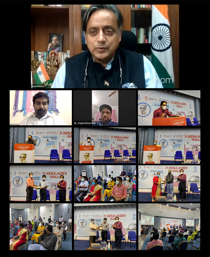 Jothydev's Professional Education Forum (JPEF) and P Kesavadev Trust in association with the IMA Nemom chapter, hosted the JPEF World Diabetes Day National Hybrid CME with the theme, 'We will do it', on 30 November 2021 at Kesavadev Hall, Jothydev's Diabetes Research Centre, Trivandrum. This CME marked the concluding event of the one-month-long activities of the World Diabetes Month conducted by the team. Honorable Member of Parliament and Former International Diplomat, Dr. Shashi Tharoor, inaugurated the event virtually.